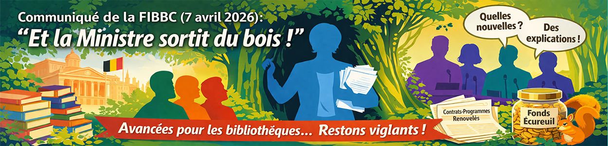 Enfin, La fibbc apporte son aide aux pouvoirs organisateurs de bibliothèques et aux réseaux locaux pour la juste compréhension des cheminements législatifs et se veut le relais de leurs préoccupations.